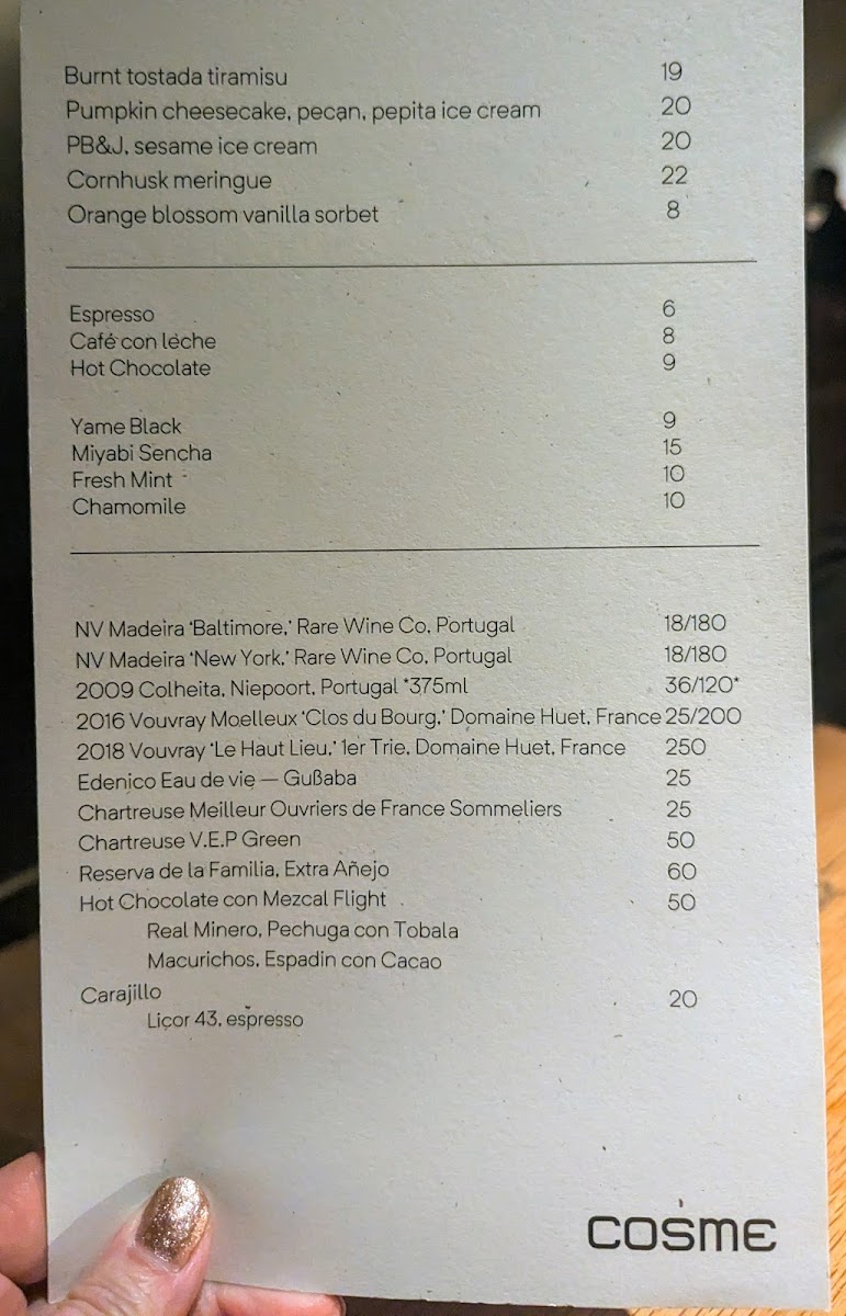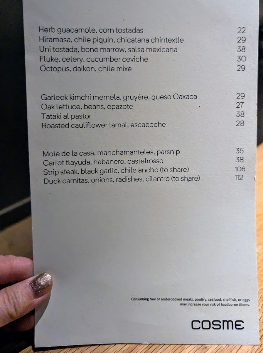 Cosme isn’t just about food; it’s a friendly, sophisticated event waiting to unfold. Whether you are celebrating a special occasion—like Kim Caplan, who marked her wedding anniversary here—or simply enjoying a night out with friends, every visit promises warmth, attentive service, and delightful cuisine.